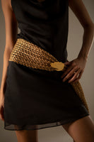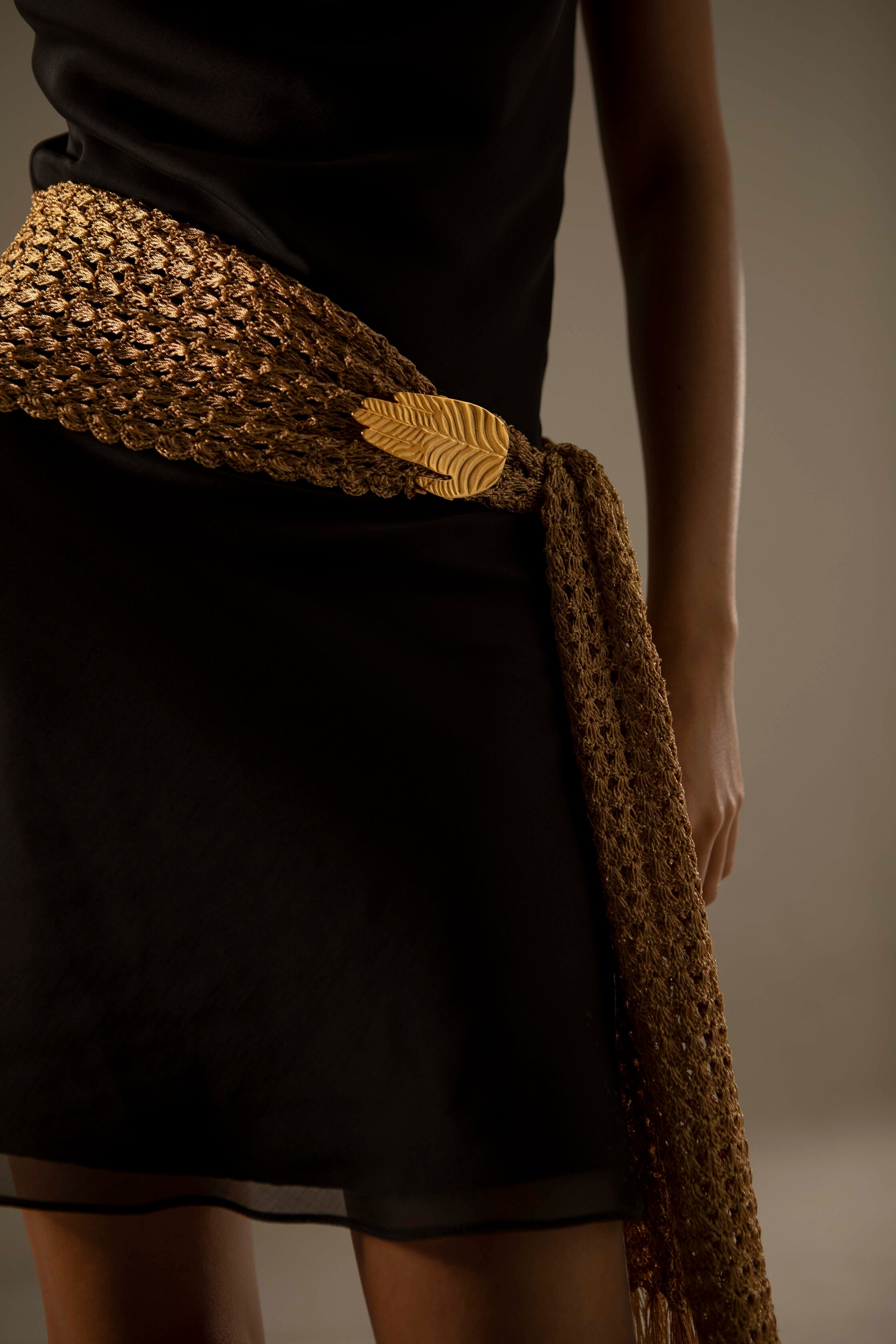 Handwoven belt, designed to enhance your silhouette with a natural and sophisticated touch. Its detailed and flexible texture allows it to comfortably adjust to your waist, adding character and elegance to any look. It's a versatile piece that can be worn with dresses, skirts, or basic garments, elevating your outfit with a unique, handcrafted touch.