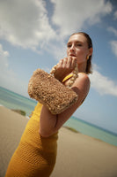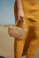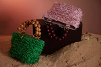 With this piece we wanted to reach a next level for the traditional wayuu bag. We rescued a rare technique the wayuu ancestors used to make. And we named it Enramada, for its original thread made in silk which represent the branches that surround the artisans rancherias (where they live). Can be used many ways: as a crossbody bag, short hang in one shoulder, as a petit purse hang, and a clutch. Its hand weaved in silk thread, velvet lining, intervened with gold plated pieces and natural tagua seeds. Completely thread by indigenous wayuu woman in La Guajira, Colombia in approximately 30 days.