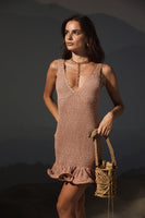 Get ready to fall in love with this sweet and romantic crochet dress! Featuring a flattering V-style top and a cute ruffle in the bottom, this dress is perfect for any occasion - from casual to dressy. Versatile and easy to style, you can wear it with flats or heels to party the night away. Don't miss out on this must-have addition to your wardrobe!