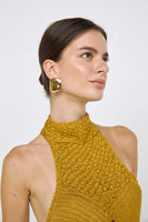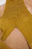 Our new asymmetrical top features a stunning halter design with a completely backless look, making it the perfect balance between sexy and sophisticated. The unique crochet pattern is sure to turn heads. Wear with our classic Atulaa Skirt in mustard for a full Waya look!
